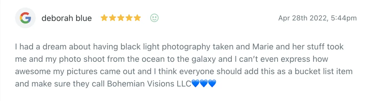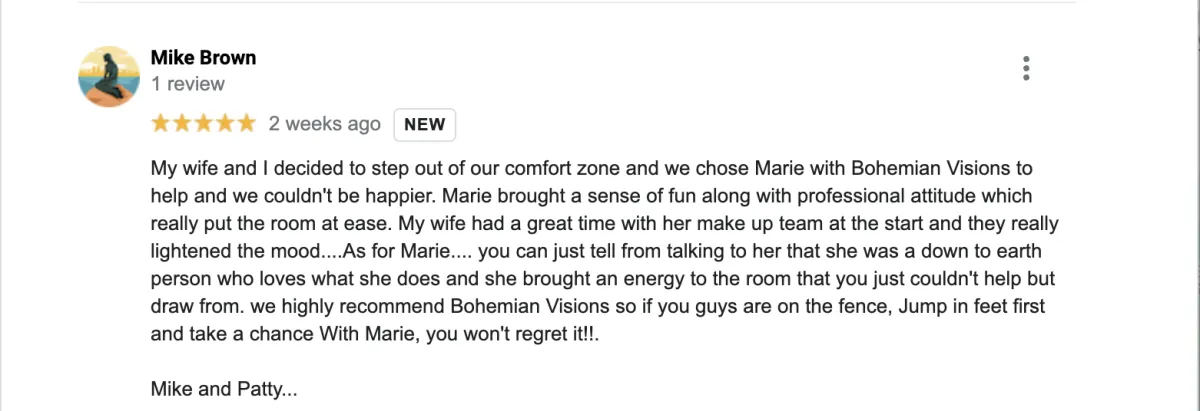 Here are some Testimonials from Past Clients of Bohemian Visions: